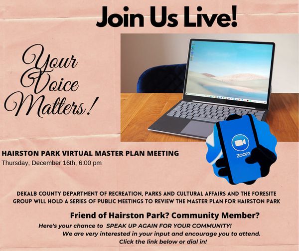 Hairston Park virtual Master Plan Meeting December 2021